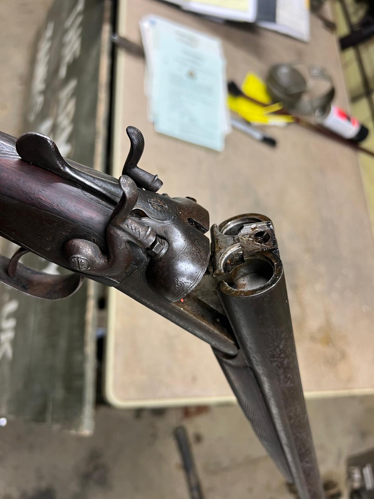 There is some damage to the base of the stock. An early de-activation with the hammers cocking and firing, unusual to find these days. number 95027