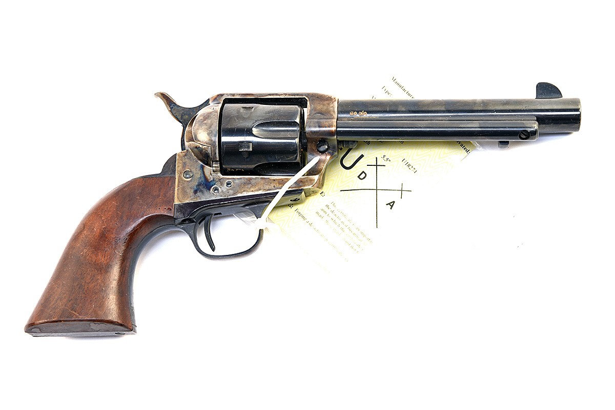 UBERTI 9MM ‘MOD.1830 – COLT’ SINGLE-ACTION ARMY REVOLVER, serial no. U18274, for 2009, 5 1/2in. blued barrel, crescent fore-sight, solid colour-hardened frame, the left side marked ‘PAT.SEPT.19.1871. PAT.JULY.2.1872.’, walnut grips, with its 2025 EU deactivation certificate