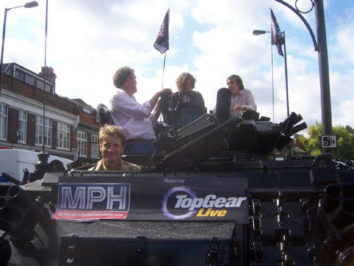 Thanks to Wayne’s world for being at the other end stopping me squashing the kerbs and Mark from Osborne’s for keeping his privates hidden under the 4 sized to small camo trousers we lent him, And of course Charlotte from top gear for having faith in my team and Tank limo, we were promised a few free tickets for the show fingers crossed, and mustn’t forget MR Plod, they did a fine job. Should i apologise for all the traffic jams caused when they closed the bridge for us, well what’s a few minutes when up the street the roadwork have been going for weeks Till the next time Top Gear 100 tanks and a big smile.